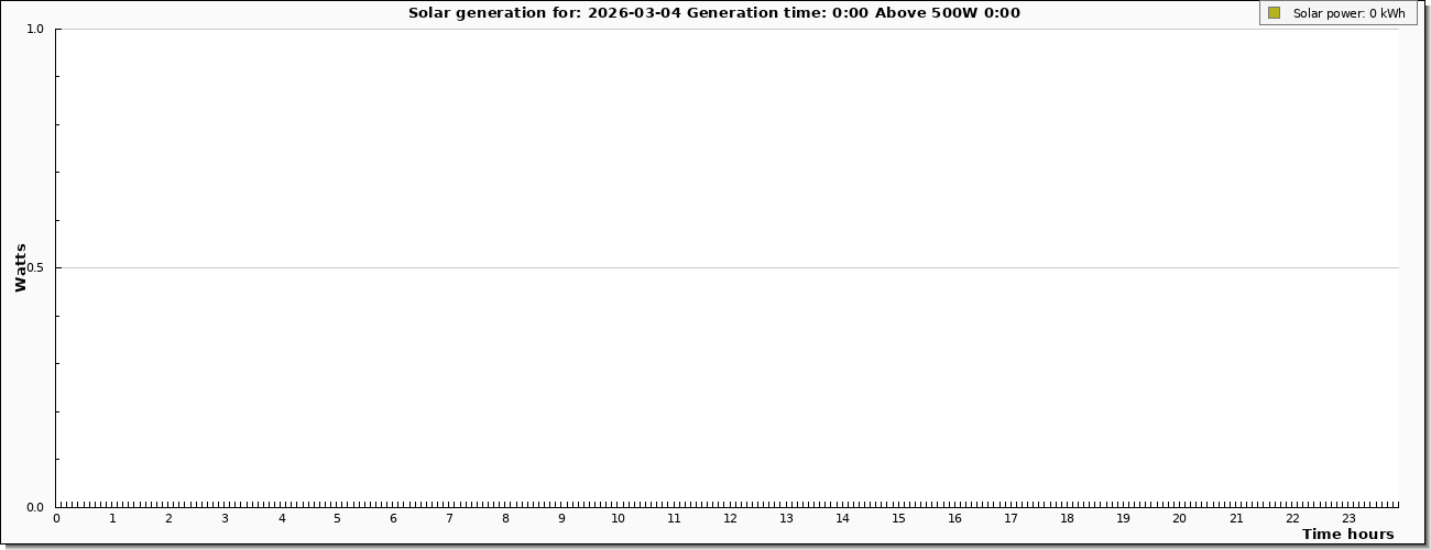 | Graph derived from live generation values taken from inverter at six minuite intervals |