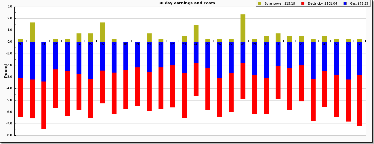 | Costs and earnings derived from usage and solar generation. Gas and electricity also include standing charges |
