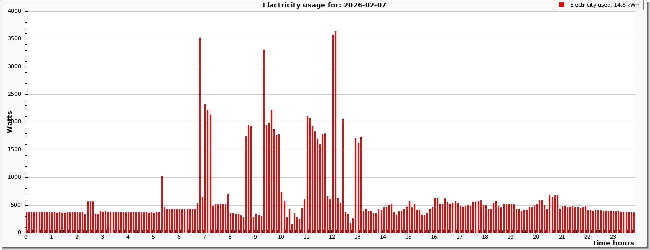 | Graph derived from live consumption, values updated at six minuite intervals |