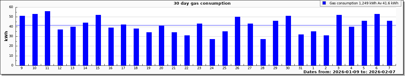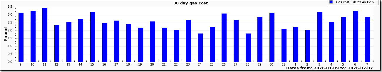 | Graphs updated from meter rotation detection, values now rounded to 0.1 cubic meter (1.1 kWh). Cost graph includes standing charge |