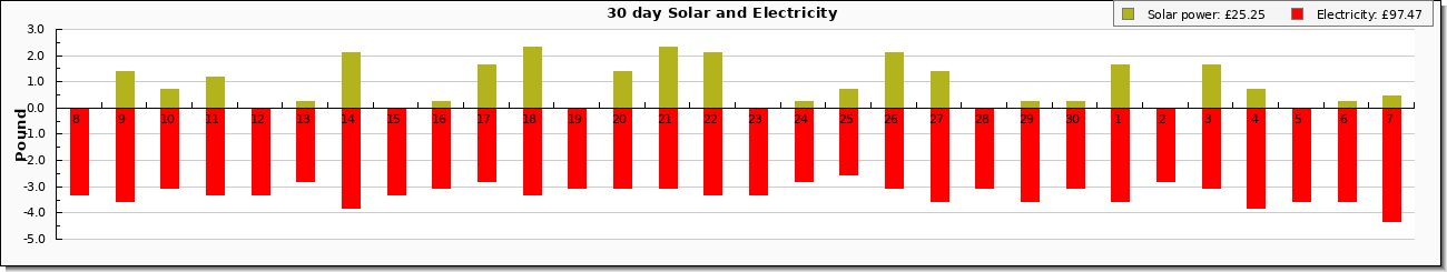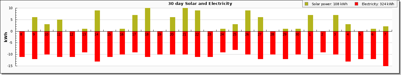 | All values updated automatically. Electricity and solar rounded to 1 kWh. Electricity standing charge included |